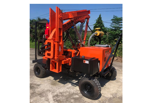 高速公路護欄打樁機 用于鄉村公路、高速公路、城市道路等防撞護欄施工時將護欄立柱打入路基的打樁設備。高速公路護欄打樁機采用四缸柴油機為動力源,以液壓振..
